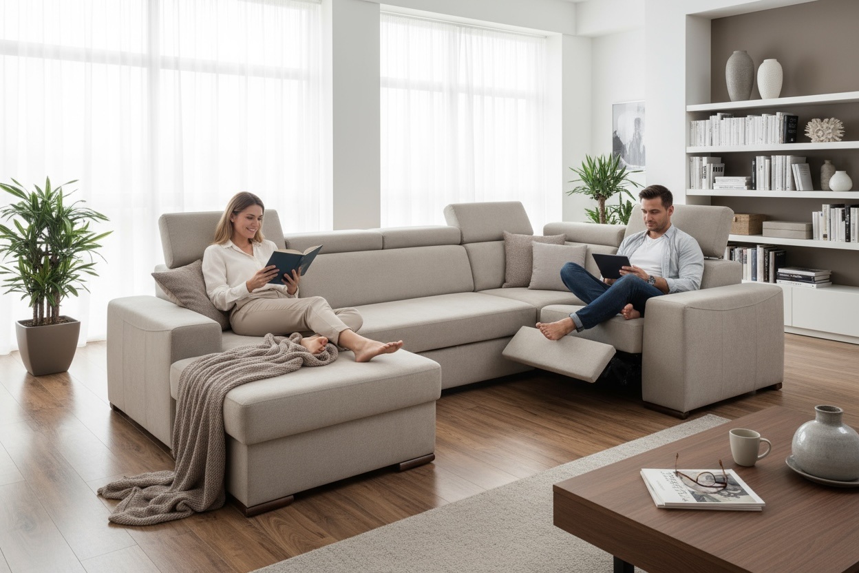 Elektryczny narożnik Fenix K2 z funkcja relax, funkcją spania i regulowanymi zagłówkami (324 x 192 cm)