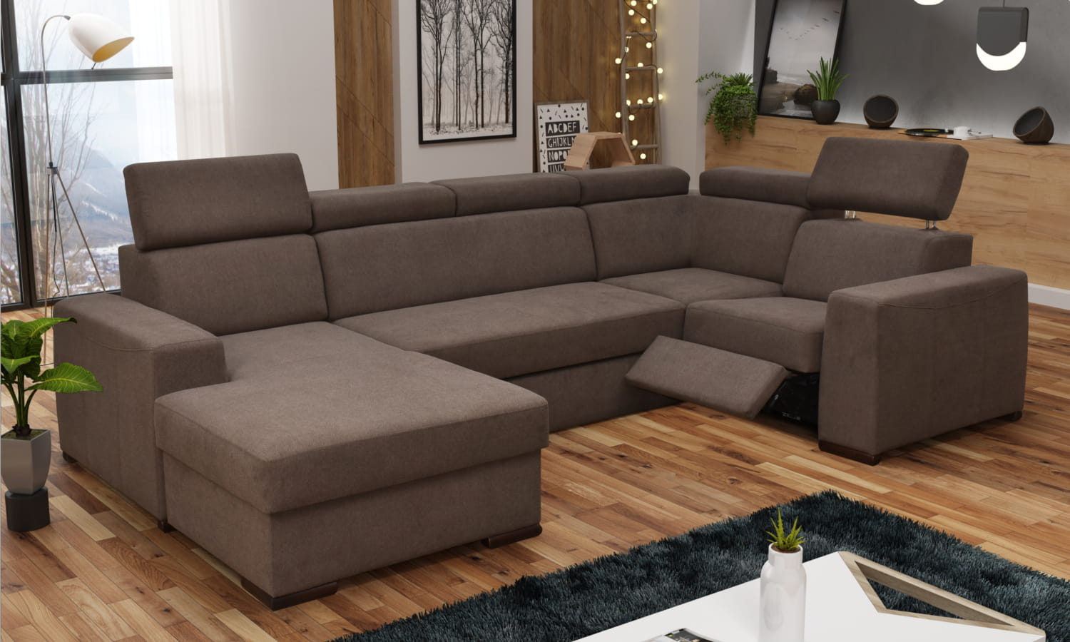 W standardzie narożnik wyposażony jest w elektryczną funkcję relax siedziska, regulowane zagłówki, pojemnik na pościel, a co najważniejsze narożnik posiada funkcję spania o sporych wymiarach. Dodatkowym plusem systemu FENIX jest możliwość doposażenia swojego mebla w funkcjonalne dodatki typu drewniany barek z uchwytami na kubek i blatem drewnianym, rozkładany blat pod laptopa, listwa z gniazdami 230v i USB, system audio, półki w bokach czy oparciach, ładowarki indukcyjne, podświetlane LED w pojemnikach na pościel itp.
