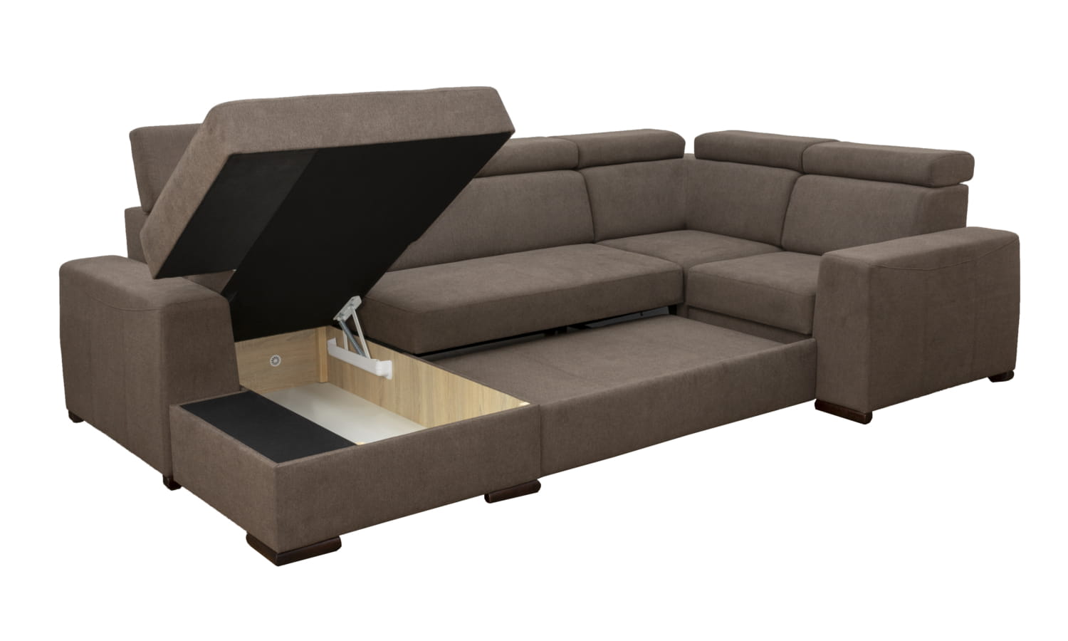 Konstrukcja narożnika zbudowana jest z litego drewna oraz płyty meblowej, dzięki czemu jego szkielet jest bardzo wytrzymały. Za wygodę siedzenia i spania odpowiedzialne jest wyposażenie siedzeń i oparć w sprężyny faliste i elastyczne pasy tapicerskie, które pokryte są grubymi warstwami pianki wysoko-elastycznej.