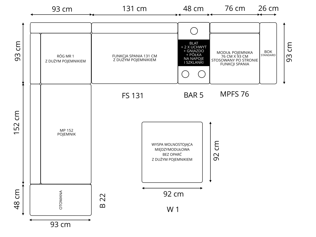 | Zestawienie modułow | MPFS76(+B2)+BAR5+FS131+MR4(+B22)+(7xO2)+W1+2xN4 |