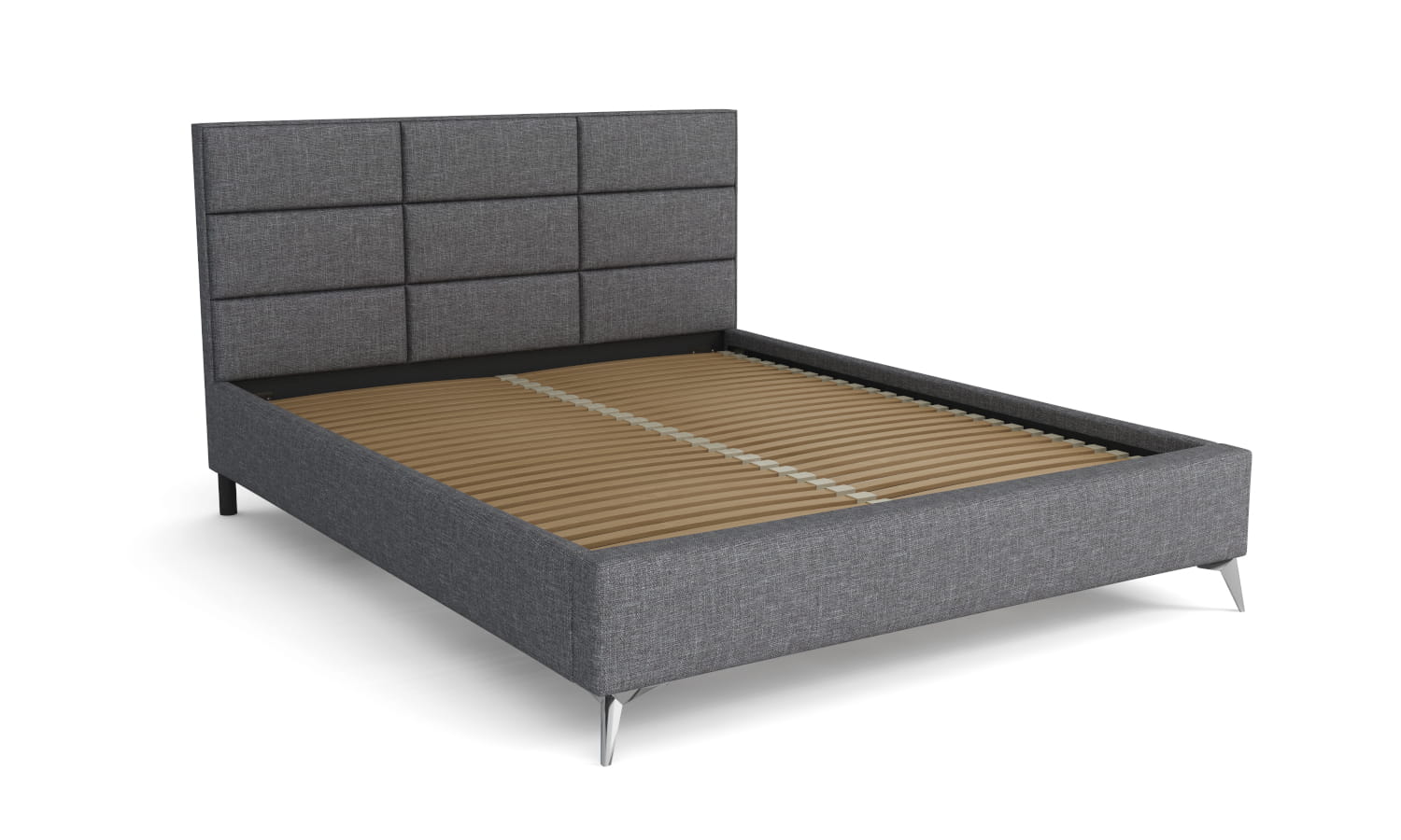 Uwaga! Łóżko do samodzielnego montażu; zawiera wezgłowie, drewniany stelaż wraz z listwami, nóżki oraz wszystkie niezbędne elementy do montażu. Łóżko sprzedawane jest bez materaca.