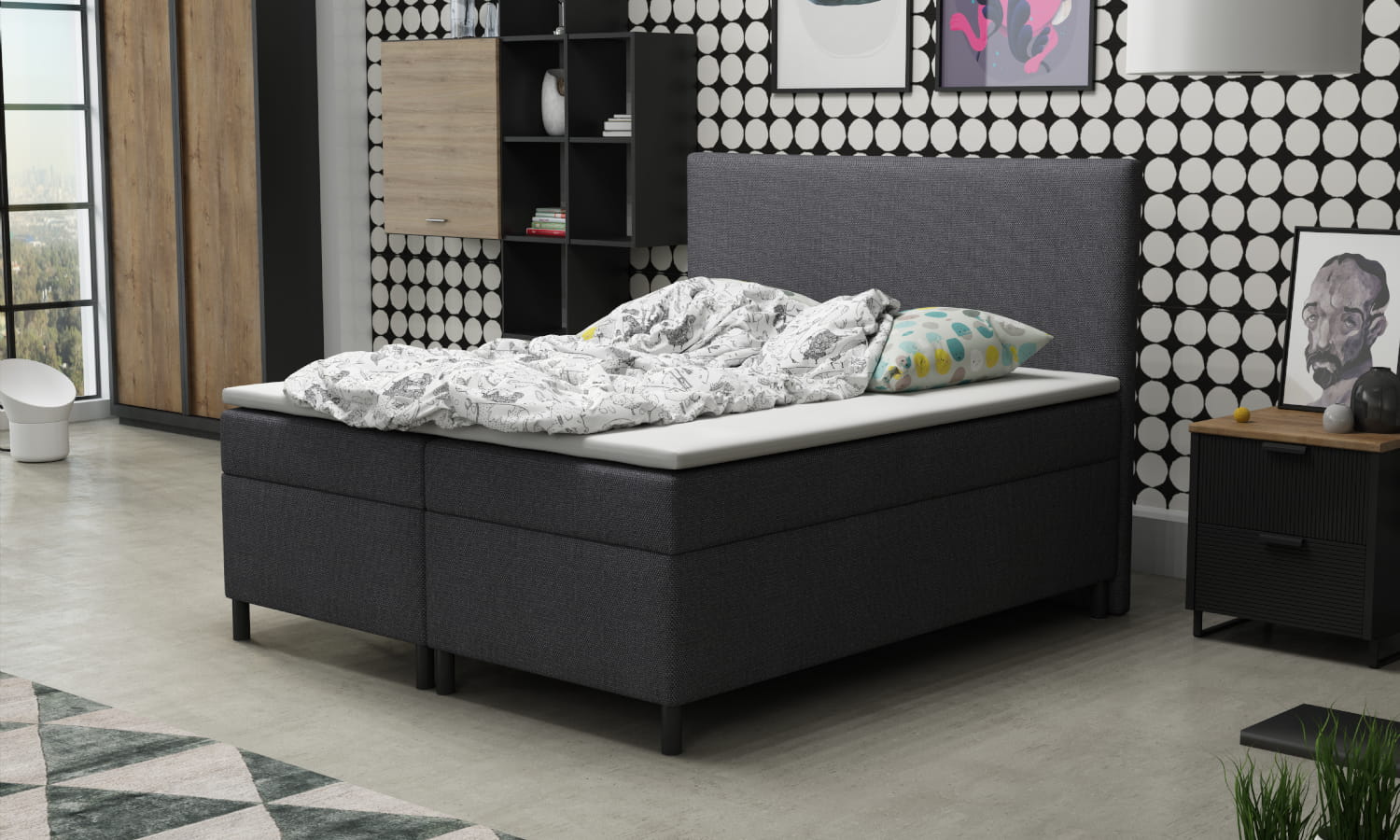 Łóżko kontynentalne z materacem Classic P2 z pojemnikiem na pościel 140x200 / 160x200 / 180x200 (1)