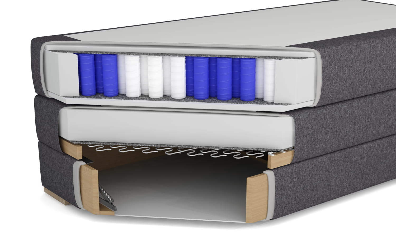 | Rodzaj materaca | sprężyna falista + pianka T25 + materac kieszeniowy |
