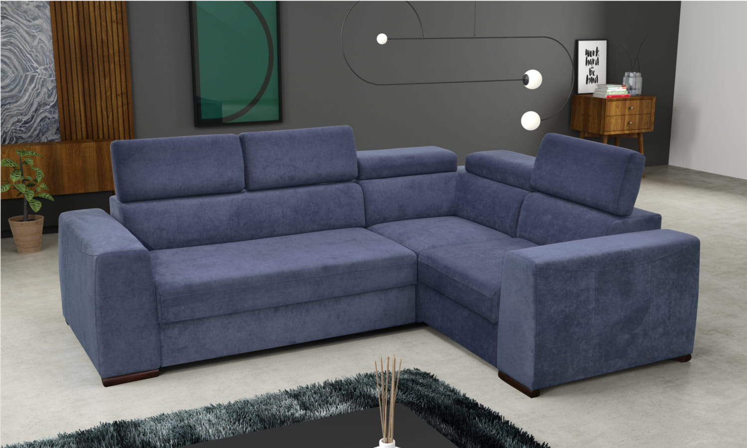 Narożnik Hilton H2 z regulowanymi zagłówkami i funkcją spania (258 x 192 cm)