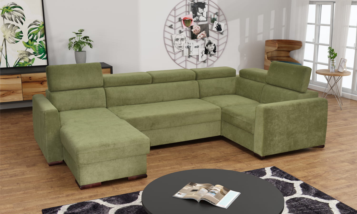 Narożnik Hilton K1 z funkcją spania i regulowanymi zagłówkami (311 x 179 cm)