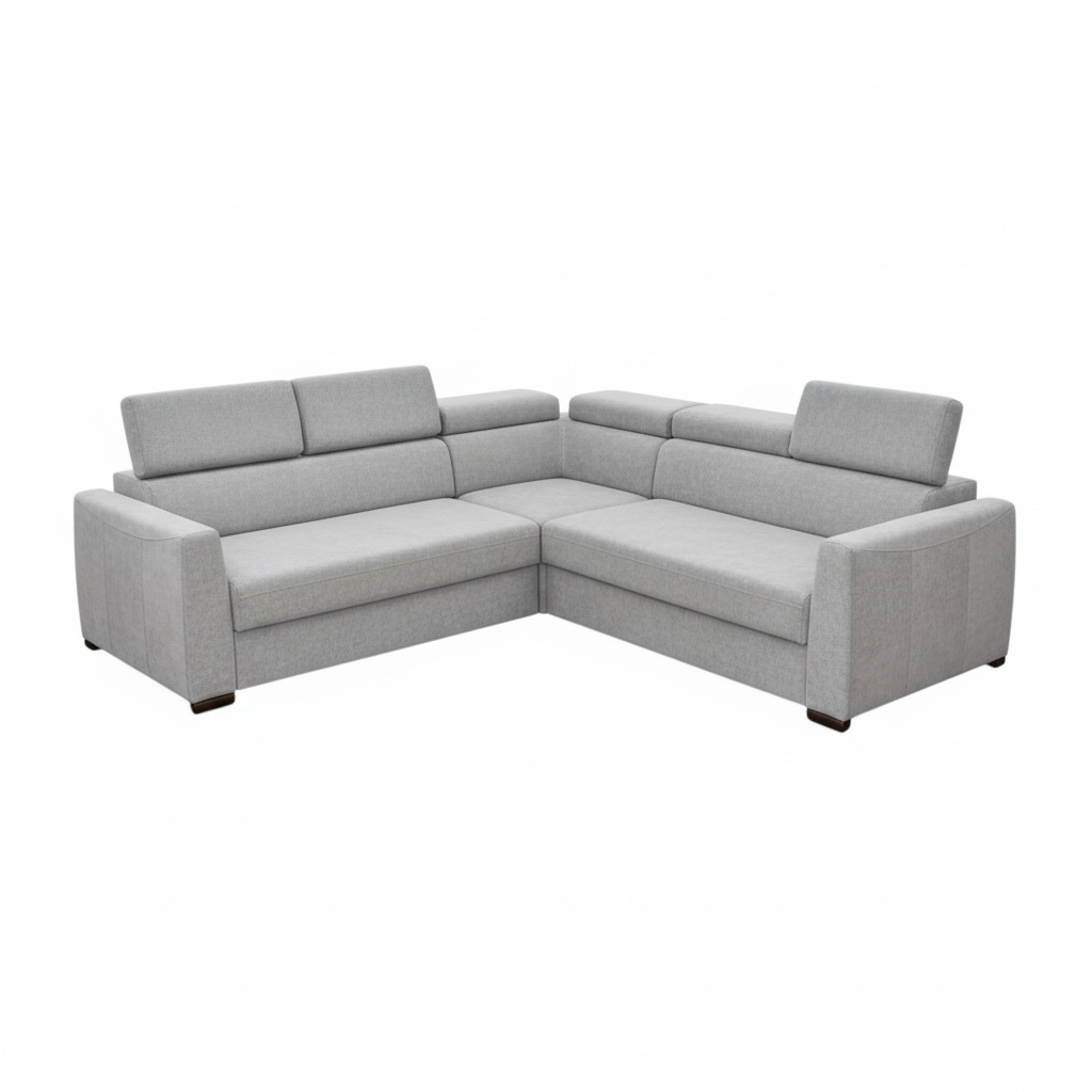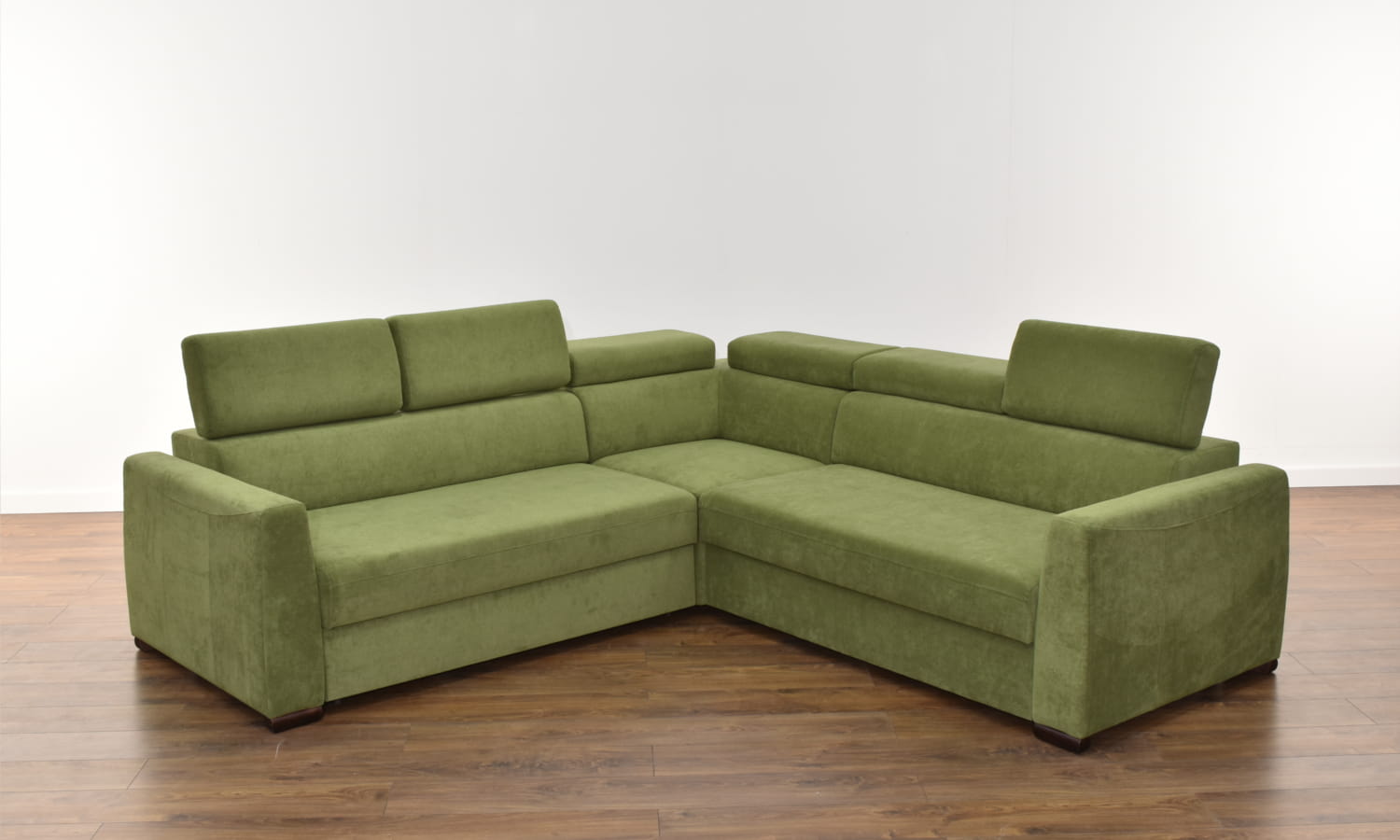 W standardzie narożnik wyposażony jest w regulowane zagłówki, pojemnik na pościel, a co najważniejsze narożnik posiada funkcję spania o sporych wymiarach.