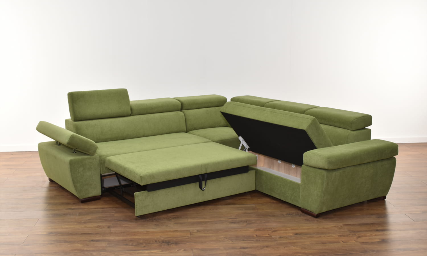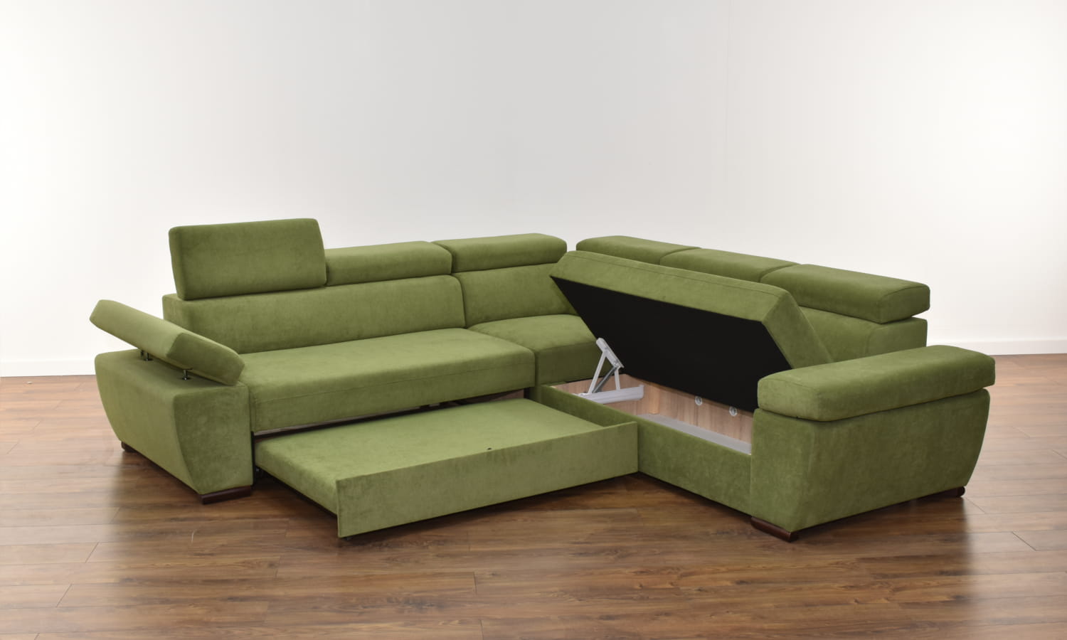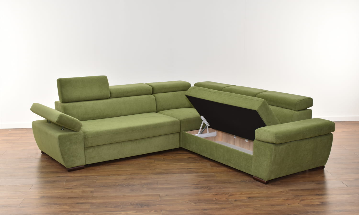 Konstrukcja narożnika zbudowana jest z litego drewna oraz płyty meblowej, dzięki czemu jego szkielet jest bardzo wytrzymały. Za wygodę siedzenia i spania odpowiedzialne jest wyposażenie siedzeń i oparć w sprężyny faliste i elastyczne pasy tapicerskie, które pokryte są grubymi warstwami pianki wysoko-elastycznej.